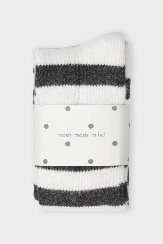 moshi moshi mind - Polar Socks Stripe - Ecru / Dark Grey