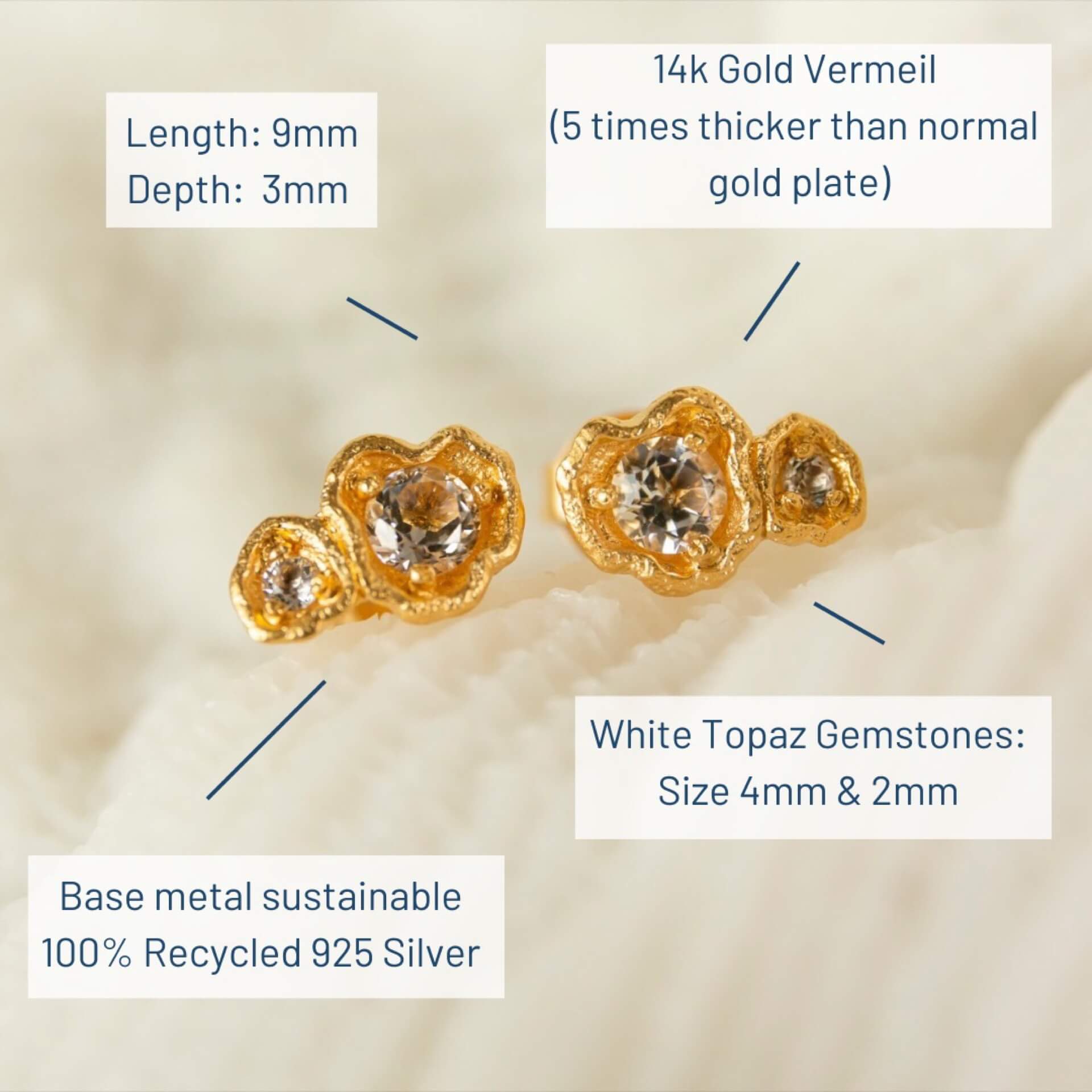 Claire Hill Designs - White Topaz Gold Vermeil Ear Climber Studs | Bestselling Everyday Luxury