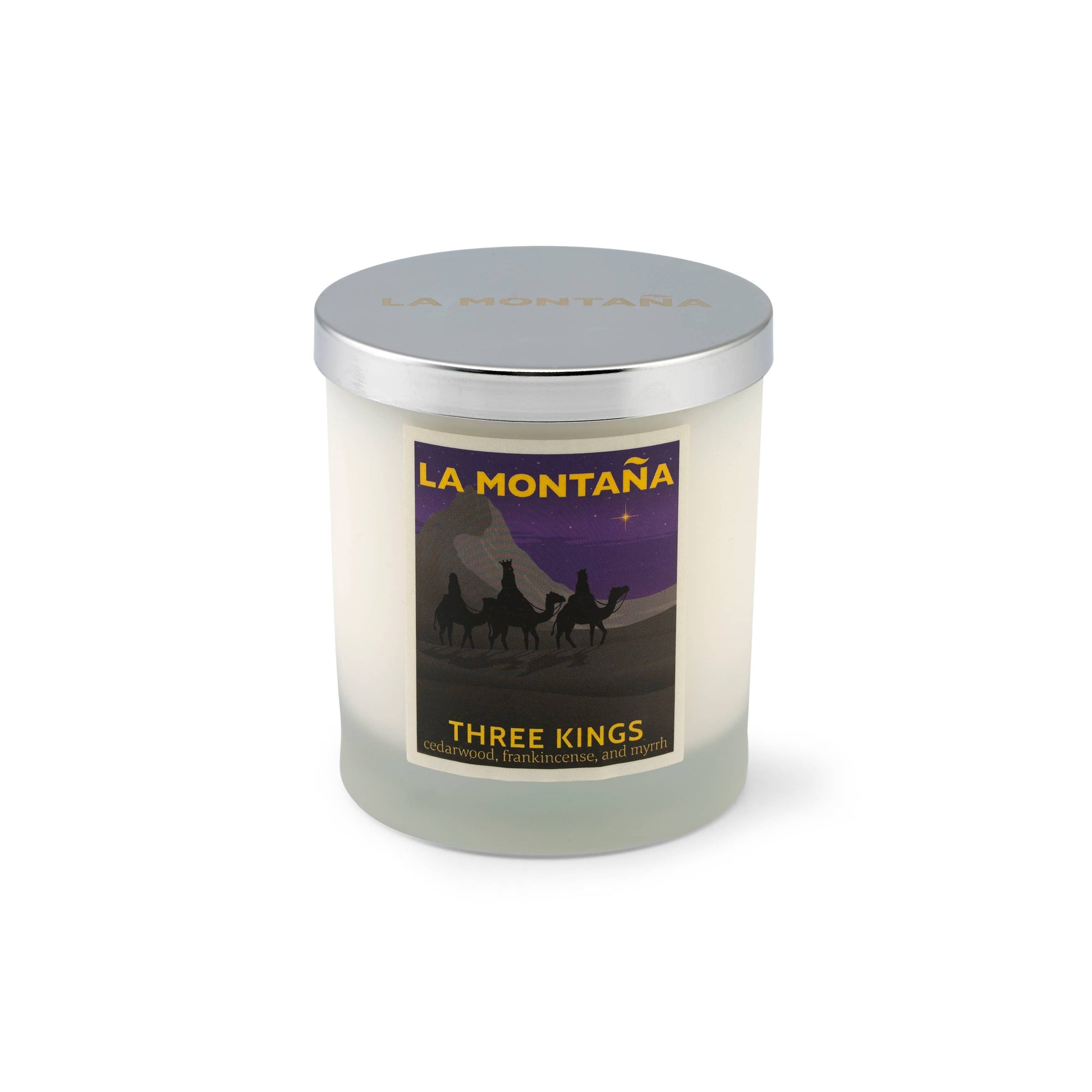 Three Kings Luxury Scented Candle. Warm, rich, and magnificently Spanish - with notes of cedarwood, pine, frankincense, myrrh, nougat and brandy. 220gm - 40 hours’ burn time.