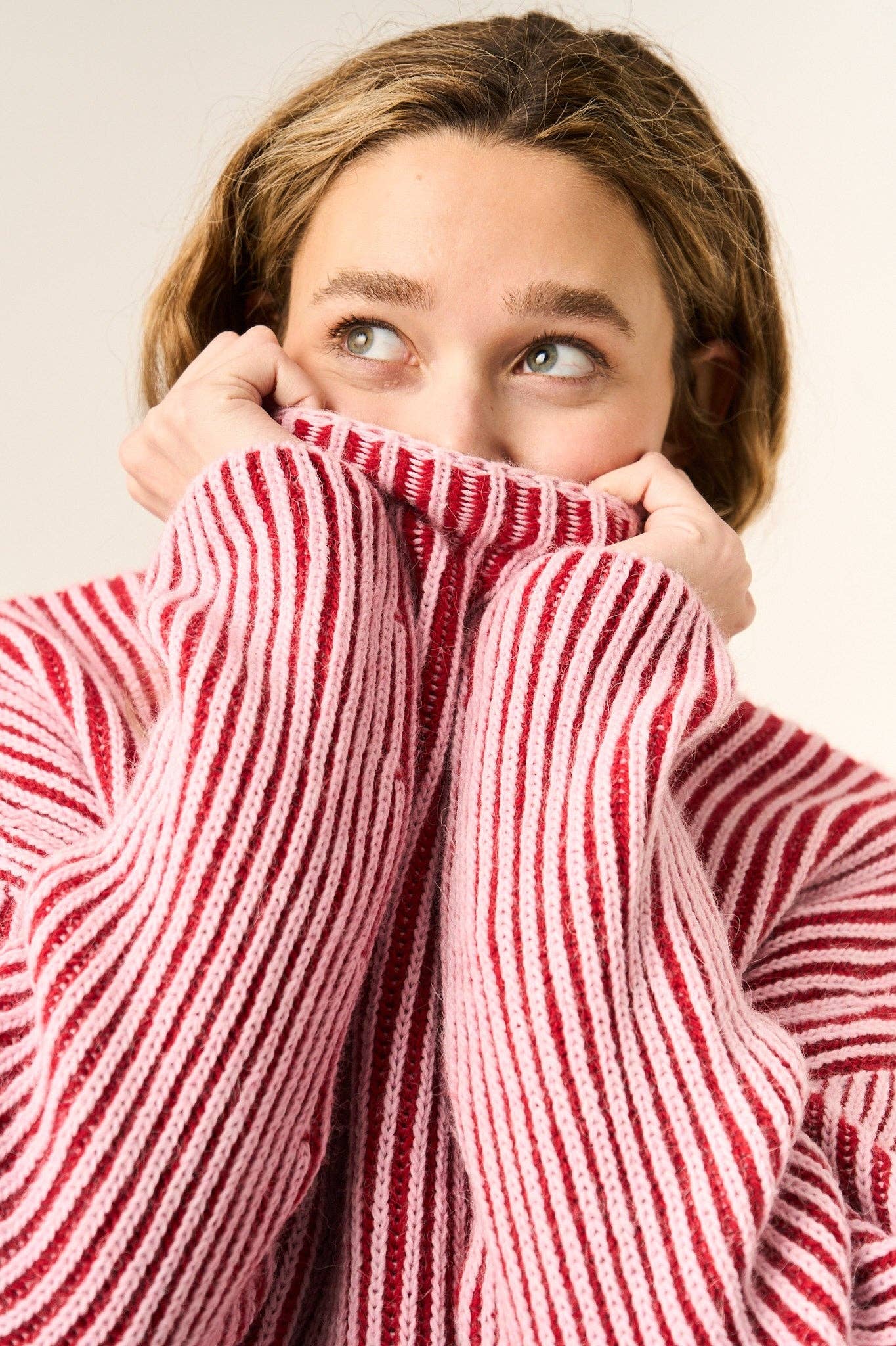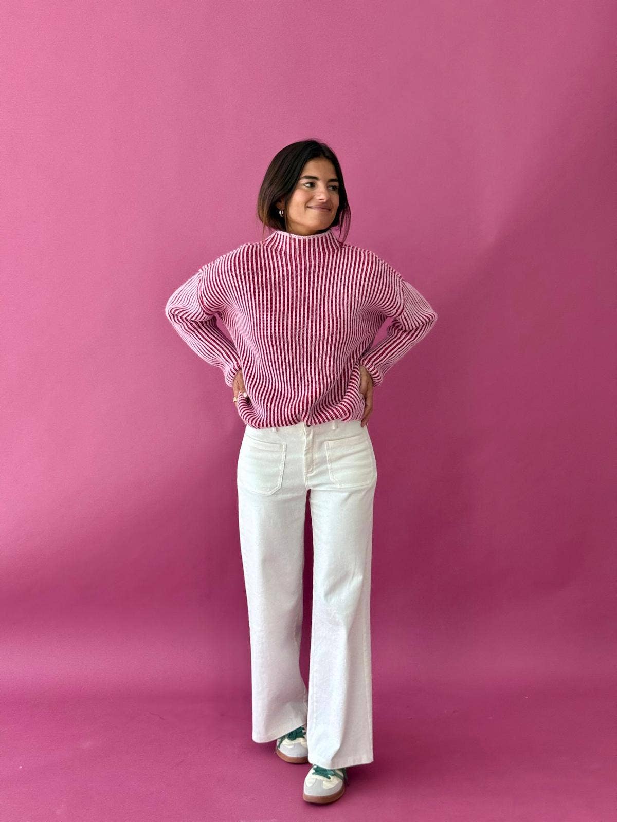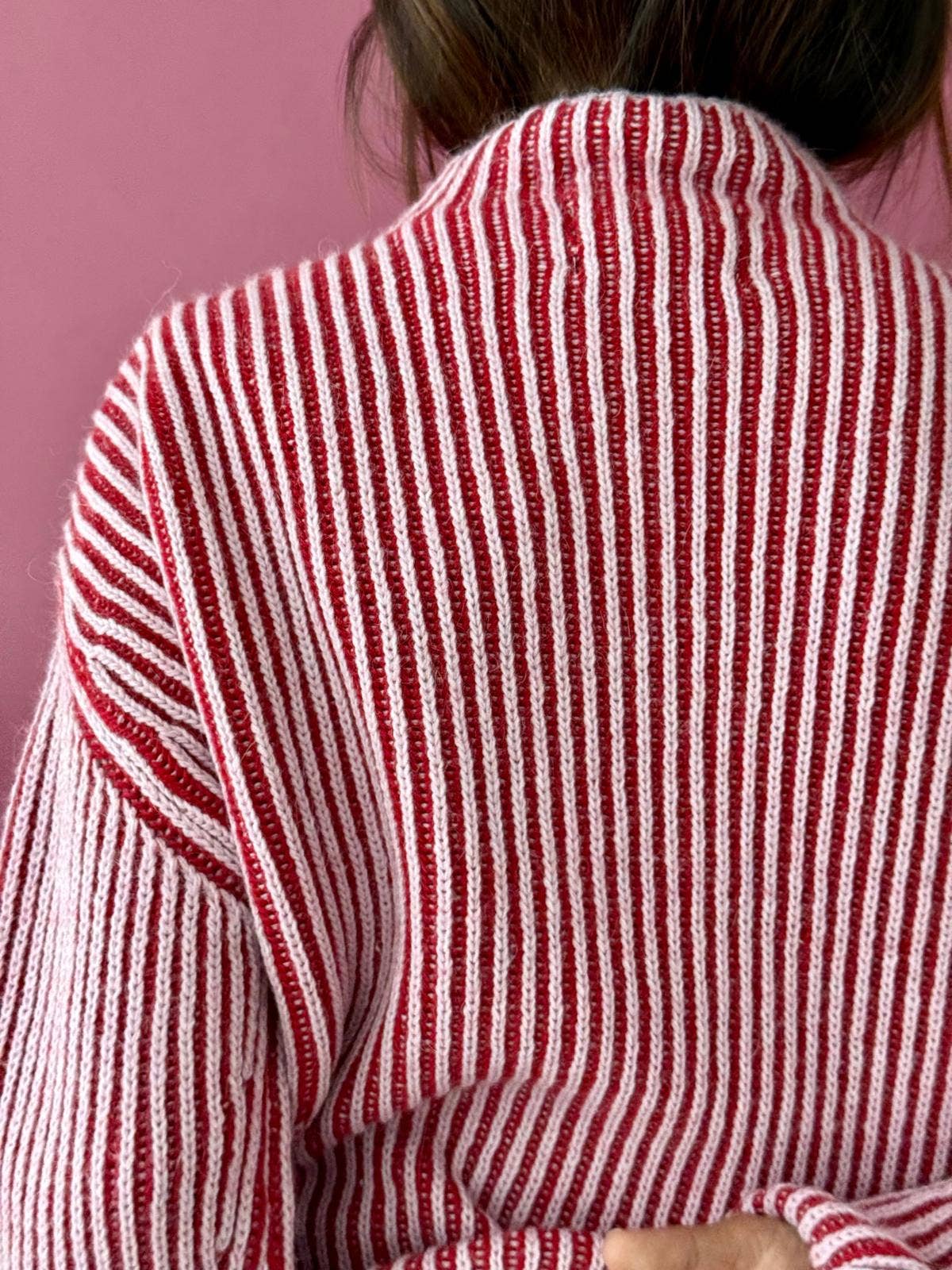 Pink knit sweater. Very warm and perfect to pair with all our jeans.