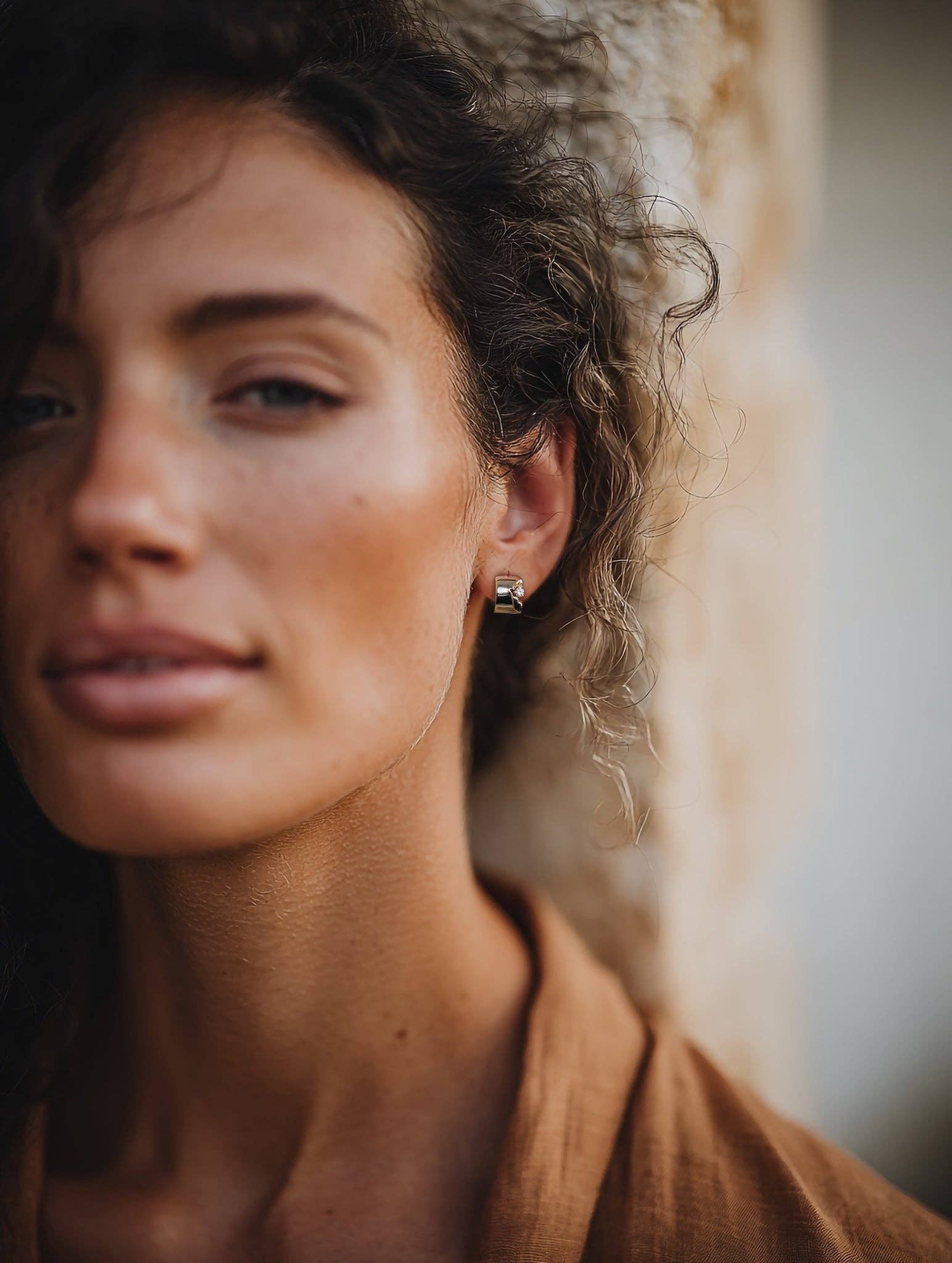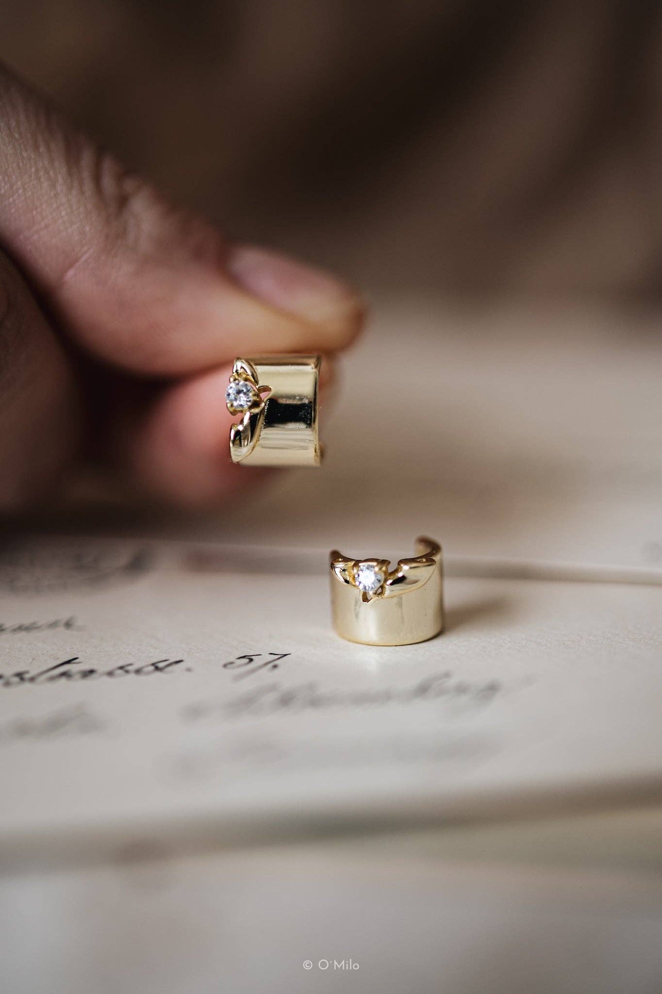These polished hoops, crowned with a glinting gem, embody elegance in their simplest form. They are the quiet statement of luxury for the woman who moves through the world with a serene confidence. Every flicker of light captured in the gem's facets mirrors the sparkle within her, complementing her intrinsic sophistication.